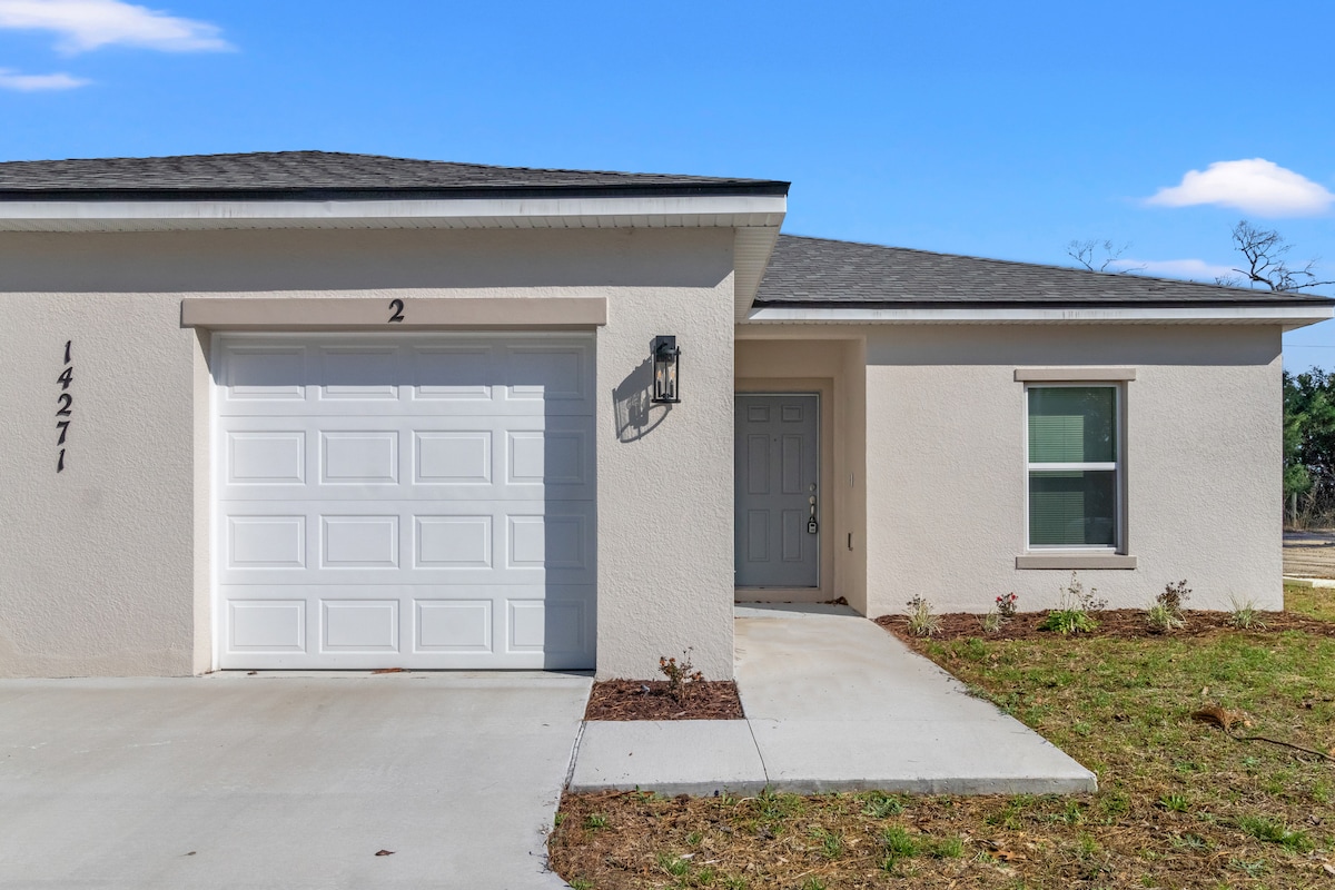 Casa de 2 dormitorios y 2 baños, con una sala de juegos (y lavandería) ubicada en el garaje. Esta casa está escondida en un barrio tranquilo y tiene aparcamiento en la entrada para 2 vehículos. - A poca distancia de Cross Florida Greenway (justo al lado del campo de golf de disco Ocala Greenway). - A 10 minutos del parque estatal Silver Springs. - A 15 minutos de Santos Trailhead. - A 20 minutos del centro de Ocala. - A 25 minutos del Florida Horse Park. - A 35 minutos del Centro Ecuestre Mundial (29 km). *Todos los tiempos son estimaciones, ya que el tráfico varía*