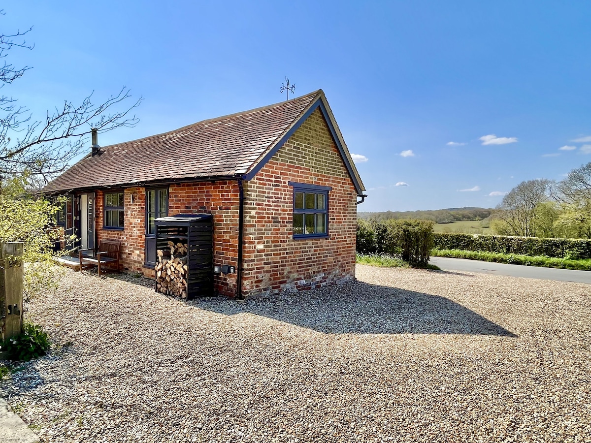 Un hermoso edificio con estructura de roble y excelentes vistas a los South Downs. Alojamiento que consta de un cómodo salón con TV, wifi y estufa de leña. La cocina está bien equipada con lavavajillas, horno y microondas. Un dormitorio doble en la planta baja con baño con ducha. Arriba hay un altillo con dos camas individuales y una sala de estar sobre el salón con un baño con bañera independiente. El espacio exterior es un patio orientado al sur con mesa y sillas y una barbacoa disponible.