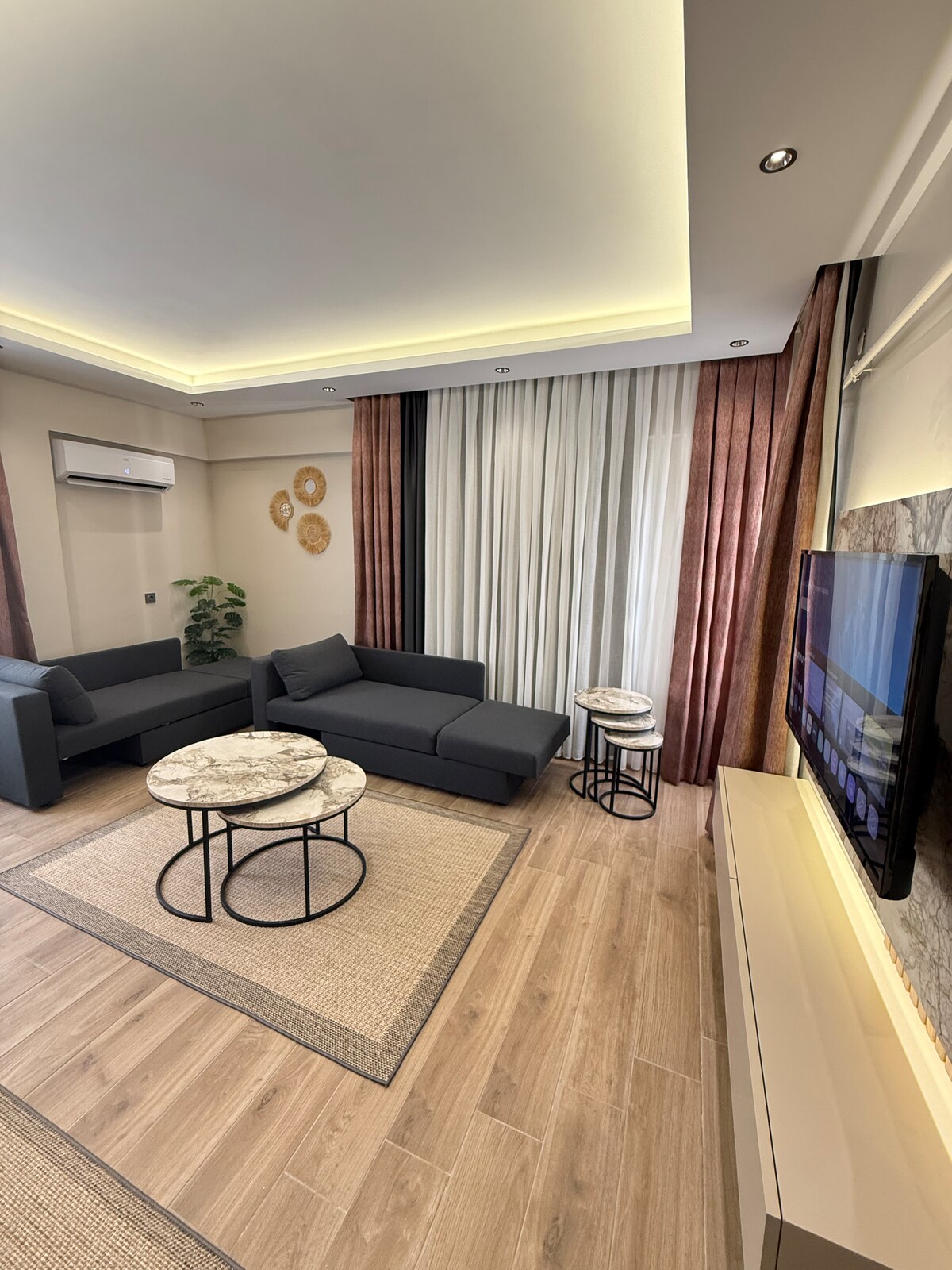 Antalya’nın merkezinde, konforlu ve şık 1+1 dairemiz sizleri bekliyor. Klimalı yatak odası ve salon, tam donanımlı mutfak, akıllı TV, konforlu koltuklar ve hızlı Wi-Fi ile evinizde gibi hissedeceksiniz. Banyo temel ihtiyaçlarla eksiksiz hazırlanmıştır. Sahillere ve şehir merkezine yakın, sessiz ve güvenli bir konumda keyifli bir konaklama sunuyoruz.