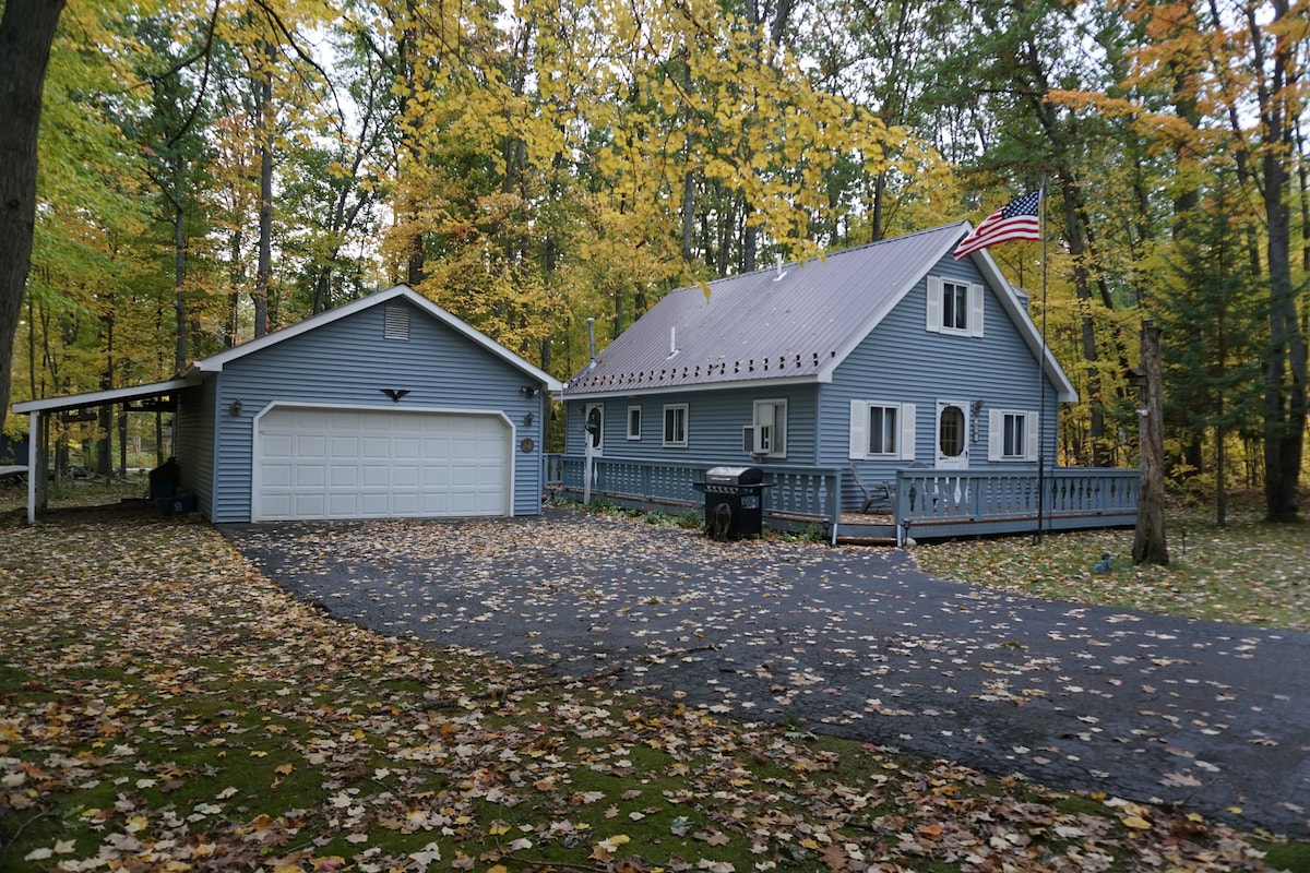 Cozy Chalet. Centrally located in wooded setting. (2 minutes from Higgins Lake South State Park. Minutes from Houghton Lake).Across from Redwood Golf course. Boating, hiking trails, Disk Golf, Roscommon Zoo, Playgrounds, Cross Country Ski Headquarters, ORV/snowmobile trails access, hunting , Fishing, canoe/kayak, snow shoe, Tip Up Town. Near AuSable River. Perfect for Guys or Girls weekends Family get aways. Think ..Boating and laying on the sandy Beaches. 2 night stay minimum.