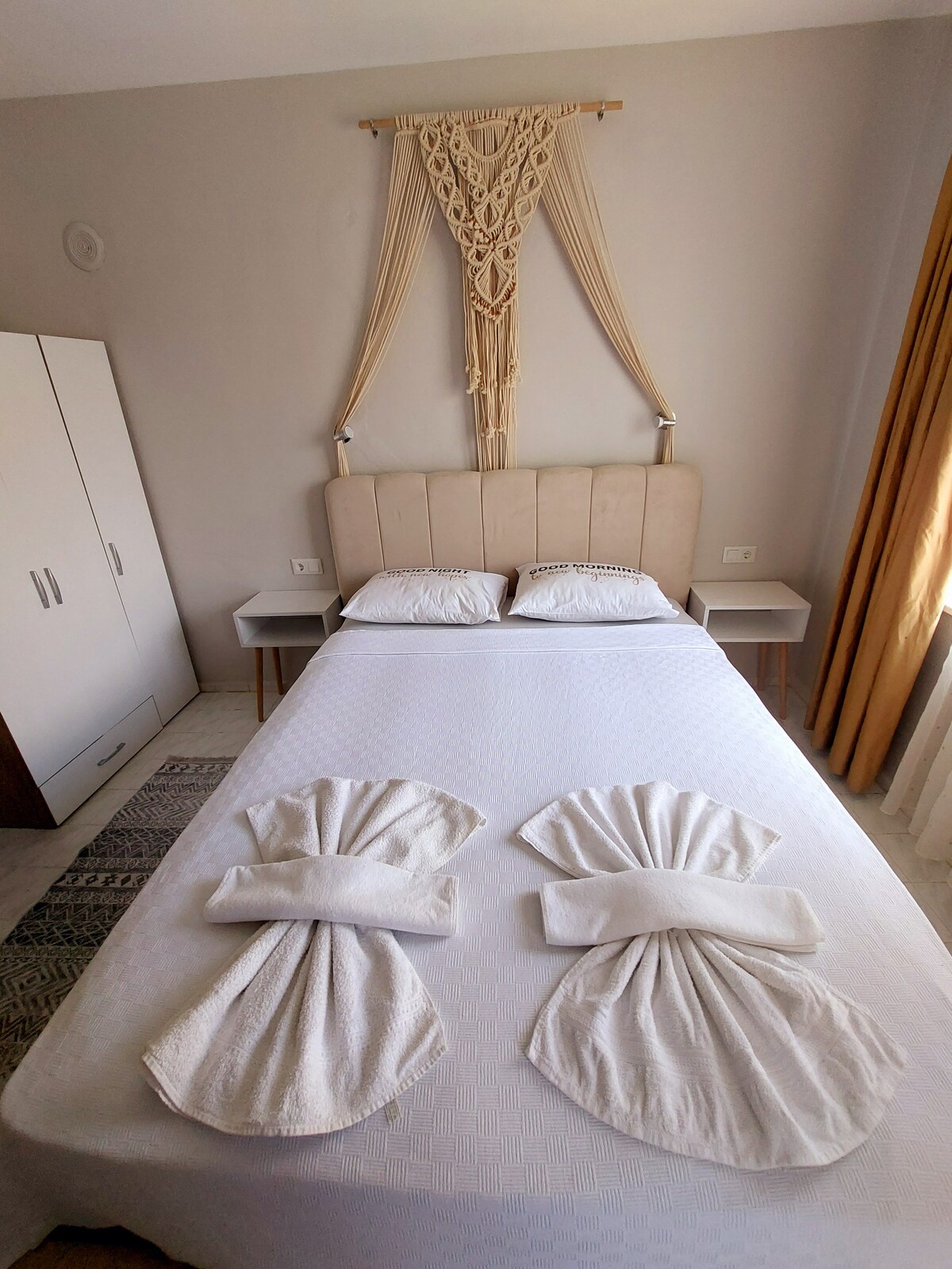 ¡Te damos la bienvenida a Bluegate! Te alojarás en una hermosa habitación de 25 m2 recién reformada con vistas a un patio lleno de begonvilles y al mar. La verdadera ventaja de esta habitación es tu propia terraza privada de 25 m2 justo encima con vistas a la hermosa bahía de Marmaris, la ciudad y sus majestuosas montañas circundantes. ¡Estás a solo unos pasos del histórico castillo de Marmaris, que alberga artefactos de los tiempos helenístico, romano, bizantino y otomano! ¡Disfruta de tu estancia y bienvenido a Marmaris!