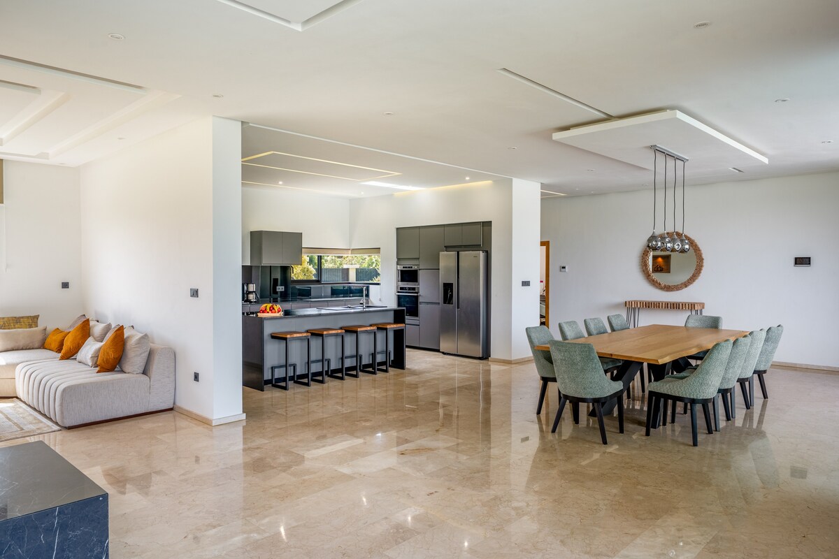 A solo 13 km de Marrakech, esta villa privada de 320 m², situada en un jardín de 2000 m², ofrece un entorno excepcional: 4 suites independientes, 2 salones luminosos, cocina americana abierta al comedor, hammam beldi, jacuzzi y piscina privada. En una residencia segura, a 16 minutos del centro, disfrutará de la tranquilidad absoluta sin renunciar a la energía de Marrakech. Trampolín, ping-pong, grandes espacios al aire libre… todo está pensado para estancias elegantes, cómodas e inolvidables.