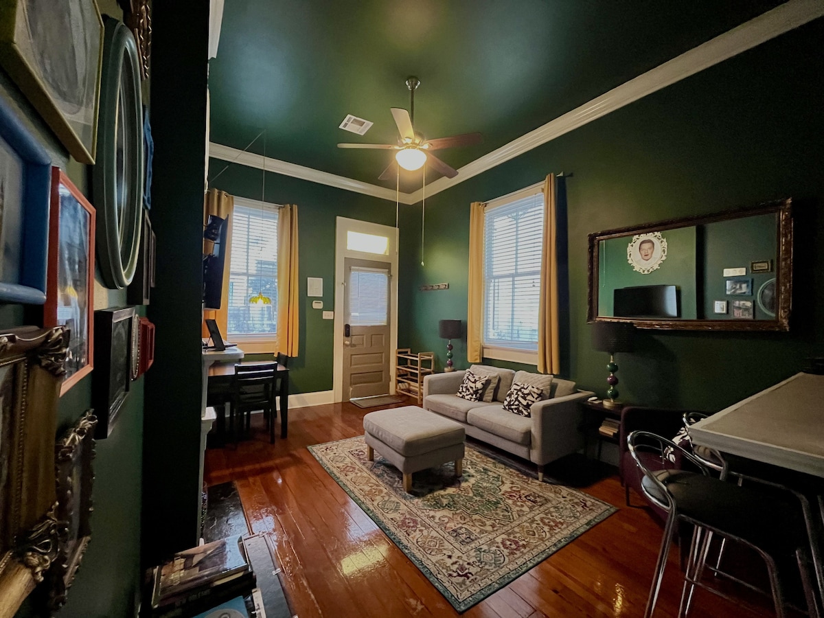 Si estás visitando Nueva Orleans, entonces deberías sentirte como si estuvieras en Nueva Orleans con techos altos históricos, suelos de madera, así como comodidades modernas como una cocina totalmente equipada y aire acondicionado central. Esta es una suite privada en una casa de 1930 totalmente renovada, a poca distancia a pie de todos los desfiles. Cuenta con mucha luz natural, una cama tamaño queen extra cómoda, wifi de alta velocidad, una gran sala de estar de concepto abierto, comedor y cocina totalmente equipada.