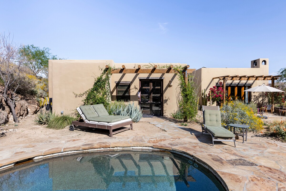 Te damos la bienvenida a Mockingbird Villa, un oasis de mediados de siglo ubicado entre Palm Springs y Joshua Tree. Ubicado a un tiro de piedra de Big Morongo Canyon Preserve, este escondite de ensueño ofrece un asiento en primera fila para más de 200 especies de aves migratorias, además de conejos, ardillas y mariposas. Ubicado en la ladera rodeada de un jardín de cactus y suculentas, los huéspedes pueden escapar de la fría y bulliciosa ciudad para disfrutar de los amaneceres de la mañana tomando café en el patio y las noches frescas contemplando las estrellas en el jacuzzi.