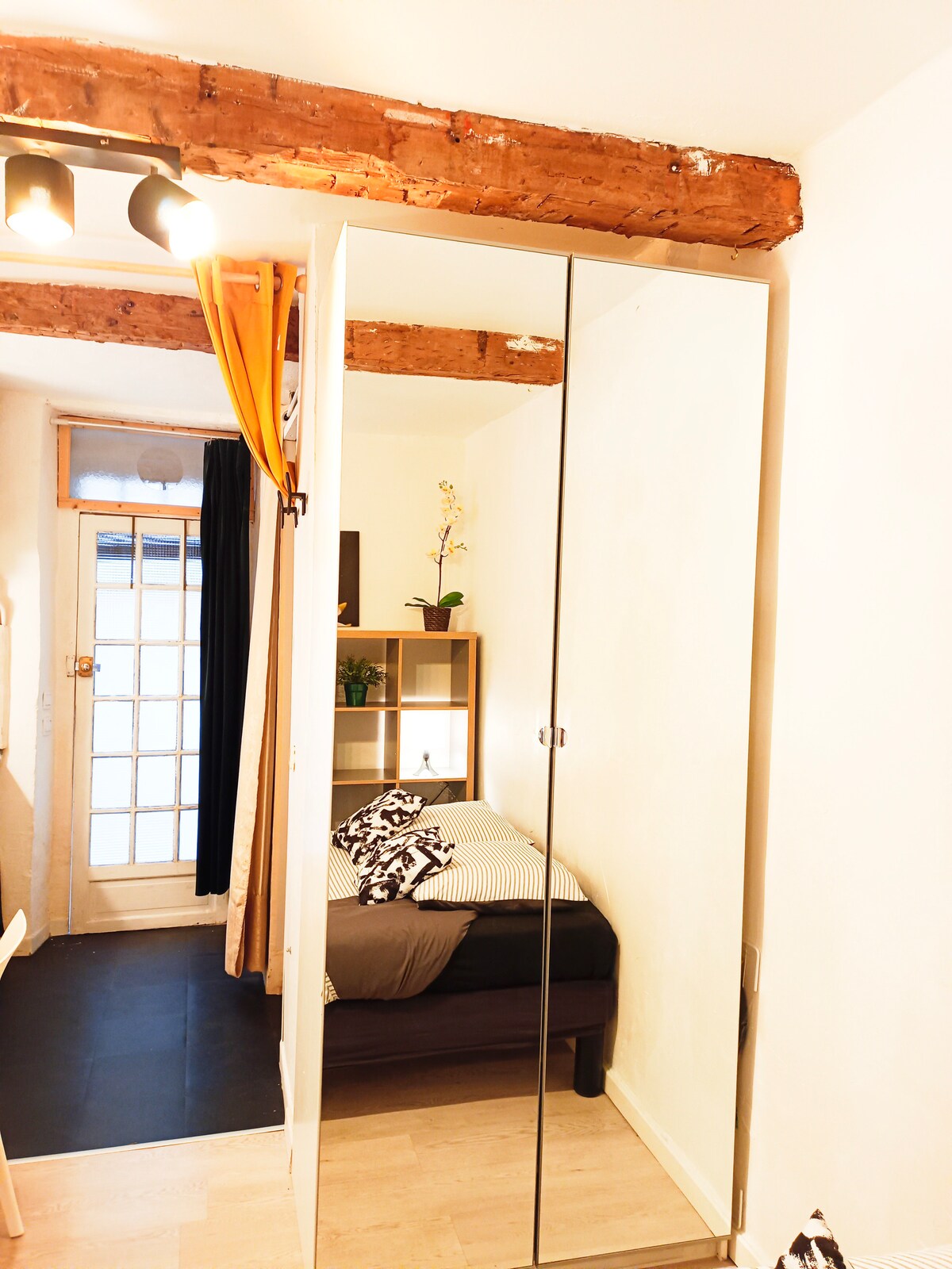 Studette , entièrement rénové, au calme sur une cour arrière. Cuisine équipé : Plaque vitrocéramique, micro onde, four, machine à café, frigot top, vaisselles ECT... Grande armoire de rangement. Salle de bain avec pharmacie et meuble de rangement ainsi qu'un radiateur mural sèche serviette (ou peignoir) hauteur 1.50 m. Table basse d appoint. Table coin repas rabattable. Linge de maison fournis ...