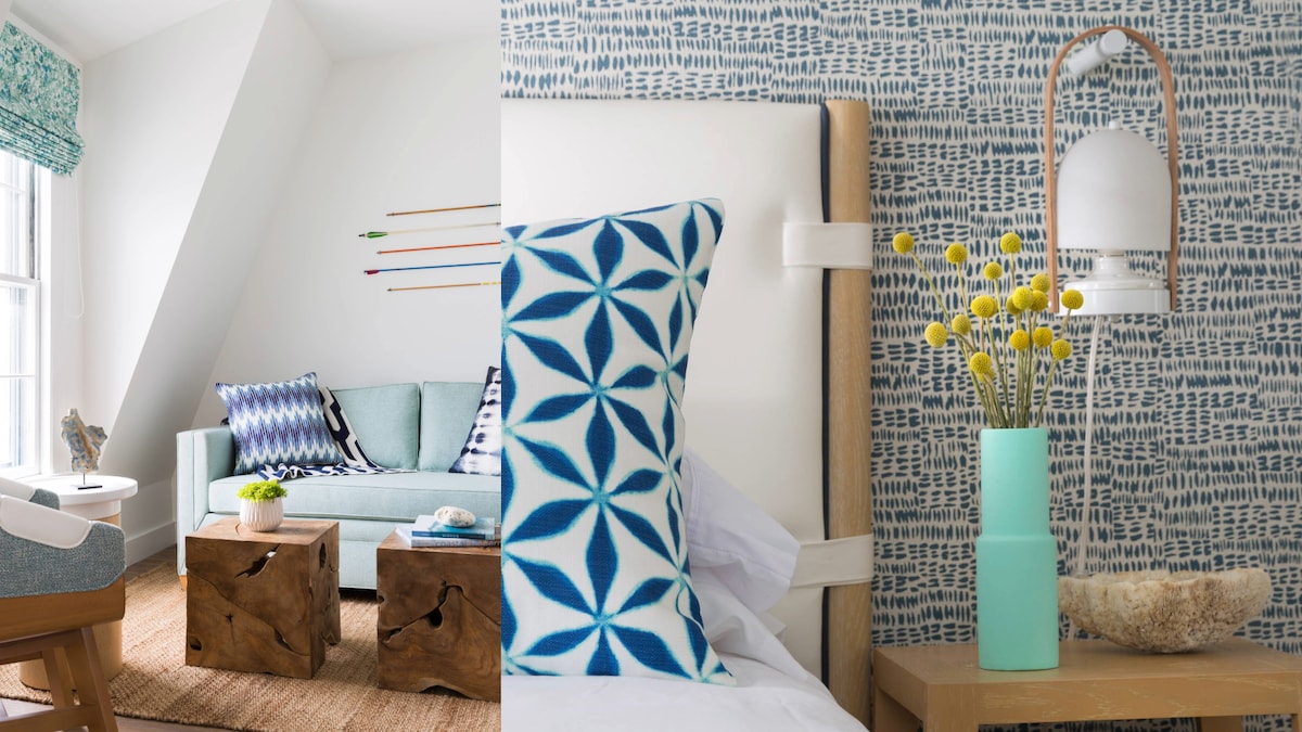 Ambiente marítimo con pino nudoso y camas con estructura de hierro