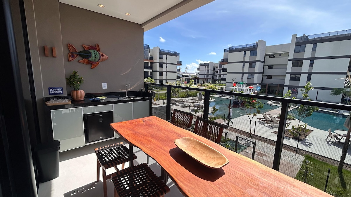 La mejor ubicación junto al mar de Muro Alto. Perfecto para la familia. Hermoso apartamento con vistas al mar y a la piscina, 3 baños, 1 aseo + 2 baños en suite (uno con una cama doble y el otro con una cama tamaño queen reversible para dos camas individuales) totalmente equipado, cocina completa, TV inteligente, Wi-Fi, balcón gourmet. Condominio superestructurado en la playa con servicio de playa, parque infantil, campo, minimercado, gimnasio y estacionamiento