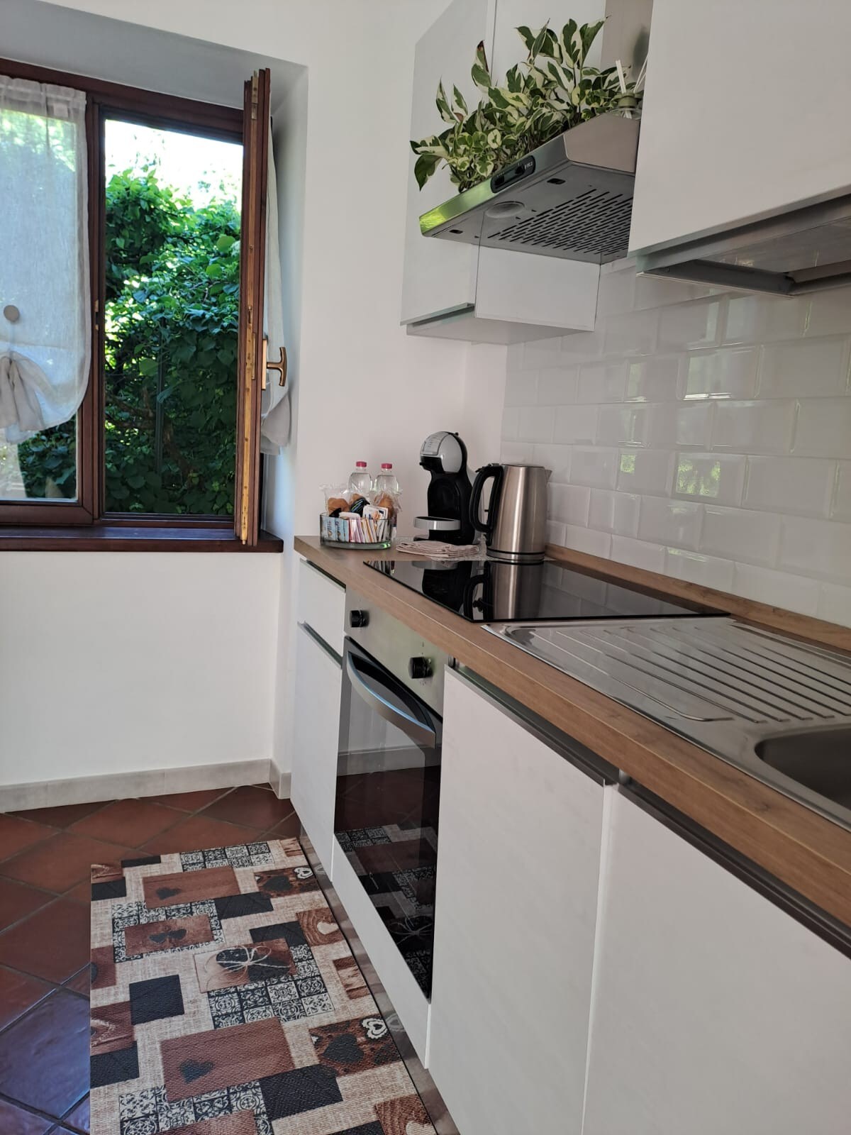 Il Ronchetto is located in the town of Cunardo, in a quiet but central position with respect to the main cities in the area, halfway between Varese and Lugano. Born from the recovery of the family's old farmhouse and barn, this four-room apartment consists of two double bedrooms, bathroom with shower, toilet, kitchen, living room and large terrace. The kitchen is complete with accessories, dishes, dishes and appliances: induction hob, dishwasher, refrigerator and oven.