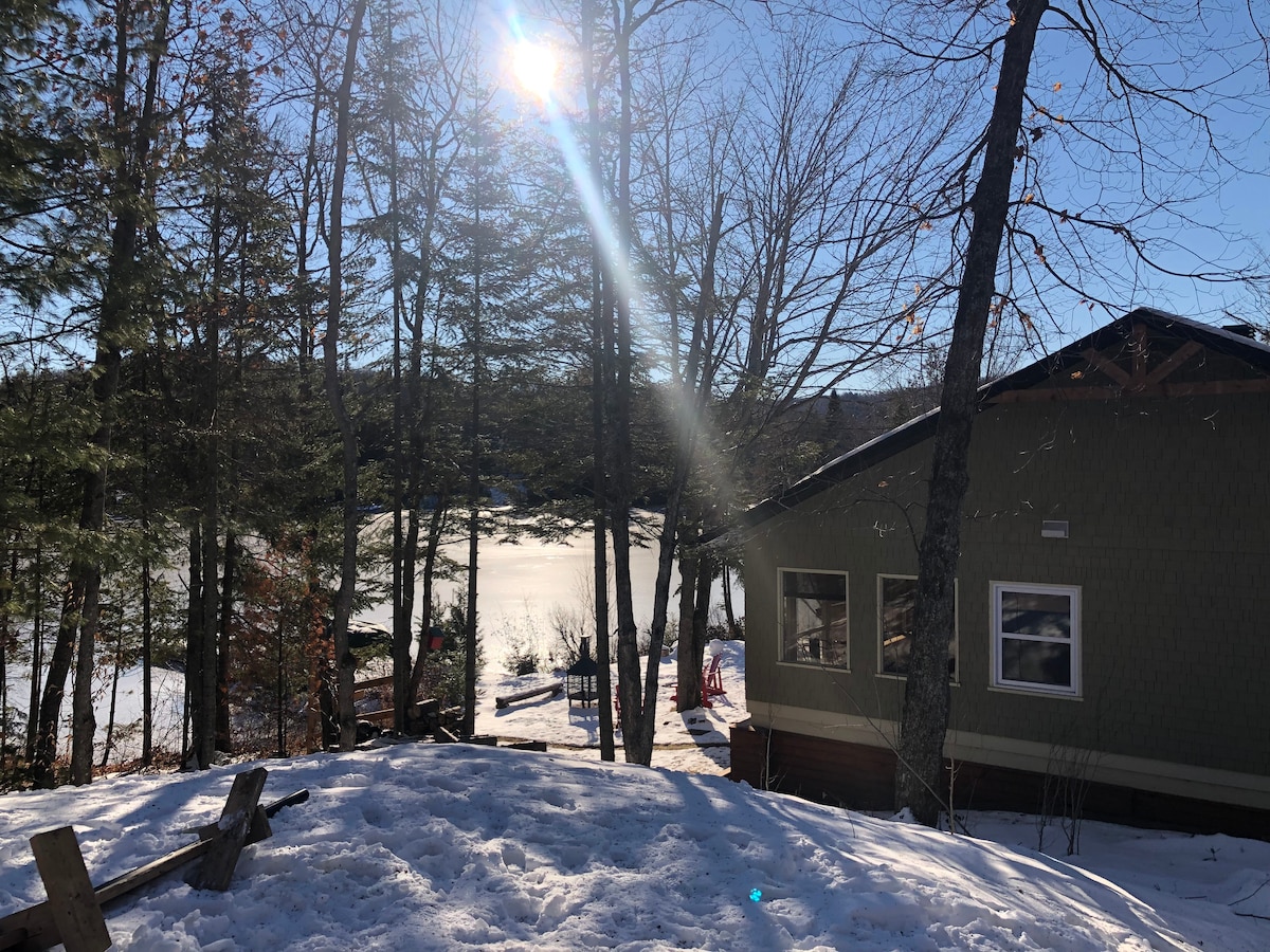 Nuestro chalet en el bosque nórdico es perfecto para pasar tiempo de calidad en pareja (o con un niño) o para un tratamiento de trabajo (con wifi de alta velocidad). El interior de madera es cálido y acogedor. Las ventanas de altura completa ofrecen unas vistas impresionantes sobre un valle boscoso. La cocina y la sala de estar de concepto abierto te mantienen en la conversación mientras cocinas. Si prefieres cocinar al aire libre, hay un fogón con parrilla y mesa de comedor al aire libre. A solo 70 minutos en coche de Montreal. El lago está a 25 minutos a pie si estacionas cerca.