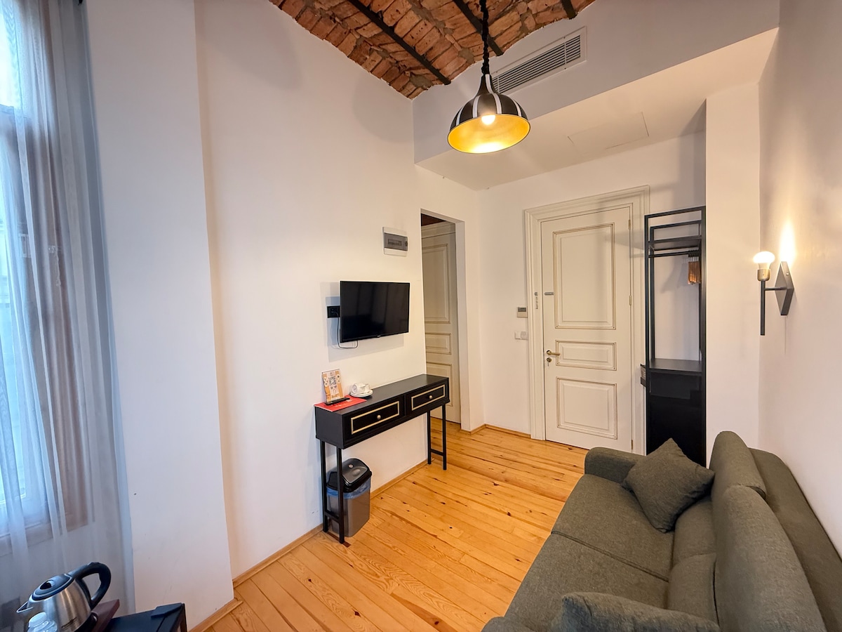 Bienvenidos a la Suite 8, el epítome del lujo donde convergen dos continentes. Como nuestra suite en ático, ofrece una terraza con vistas inigualables al Bósforo, que muestra la mezcla única de Europa y Asia de Estambul. Sal a explorar la plaza Taksim, la península histórica y Galataport, luego retírate a tu suite, lleno de decoración elegante y servicios modernos. Experimenta el ápice de Estambul desde la suite 8, tu mejor escapada de lujo.