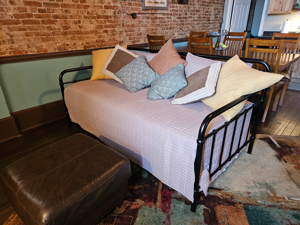 Olvídate de las preocupaciones en este gran alojamiento: ¡es un oasis de tranquilidad! Unidad de un dormitorio recién renovada con cocina completa. En el centro de Lewistown. Todas las comodidades del hogar mientras viajas. Dormitorio grande con armario enorme y cómoda cama tamaño queen. Sala de estar con TV inteligente y 2 zonas separadas perfectas para trabajar o cenar. Lavadora y secadora en el edificio y gratis. Edificio de un nivel con 15 apartamentos, así como un ala de negocios con un peluquero de perros, fotografía, baile y estudio de pintura.