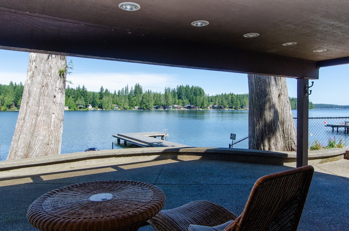Renta de alojamientos vacacionales con área de asientos al aire libre en Mason Lake