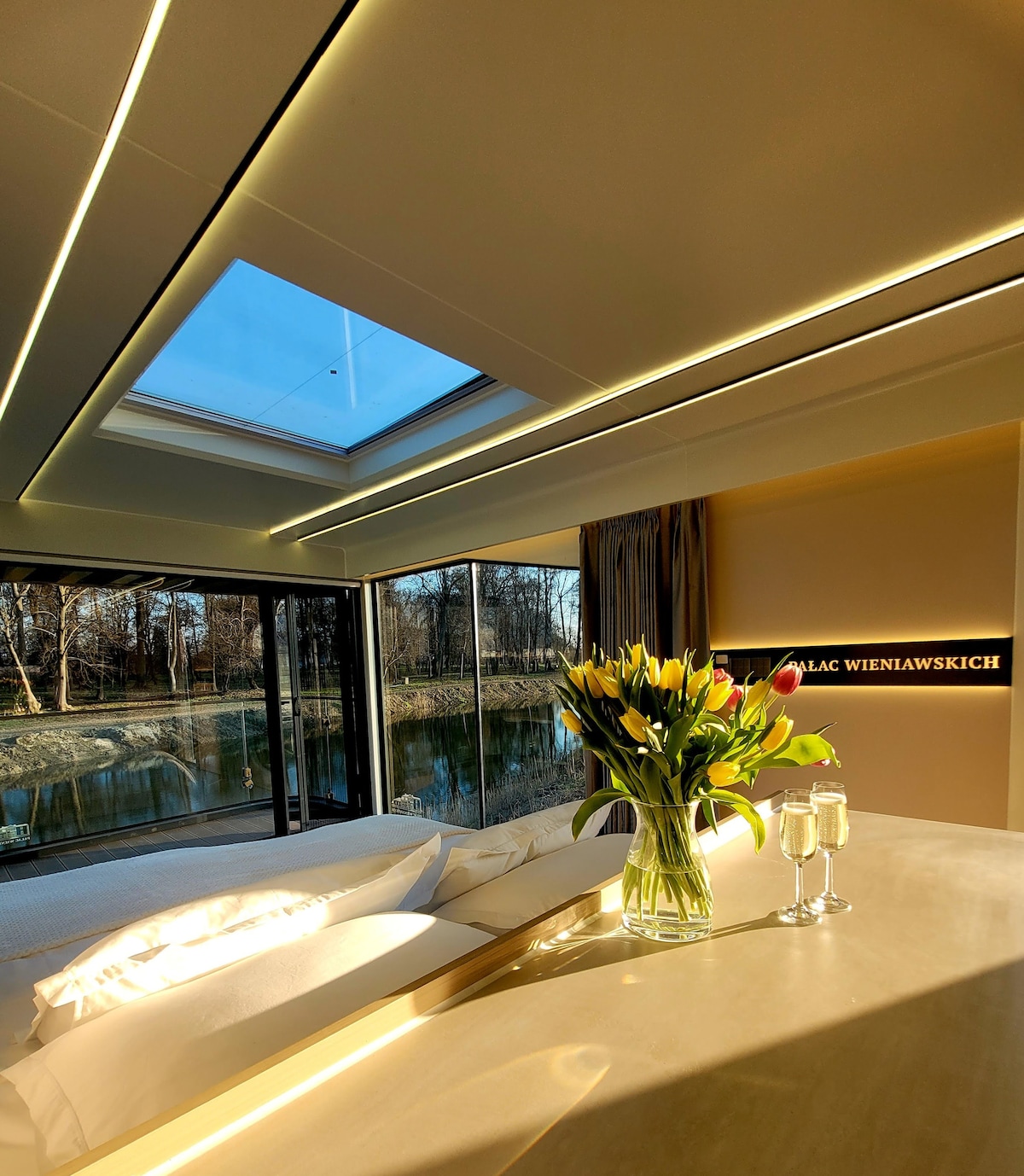 TuyoApartments Lake Park (43m2) is a boutique flat for those who appreciate comfort and designer interiors. The flat has a fully equipped kitchen with a coffee machine, bathroom with walk-in shower and luxurious Rituals cosmetics, an open lounge area with a sofa bed, projector and retractable screen and a bedroom with a comfortable bed, SmartTv and wardrobe. On request, breakfast can be delivered to the flat door (45 zl /night).