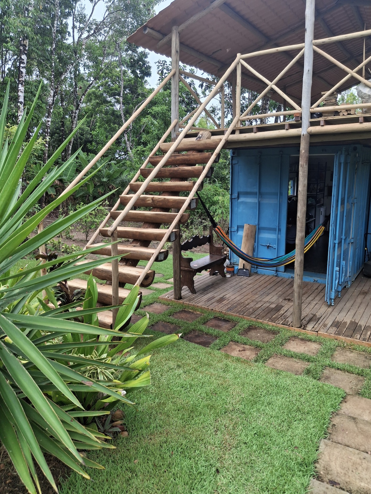 Ekoa Container es un refugio con capacidad para hasta 3 personas que recibe a los niños con total comodidad. Situado cerca de la laguna de Aruá y de Praia do Forte, cuenta con una gran zona verde con plantas autóctonas. Cuenta con una azotea exclusiva, que garantiza paz y privacidad. La obra del artista en el jardín integra el estudio con el entorno. Despiértate con una luz suave, disfruta de un café en el balcón y pasa noches estrelladas en el jardín. Practica yoga, descansa y disfruta de la naturaleza. Descubre tu momento Ekoa.