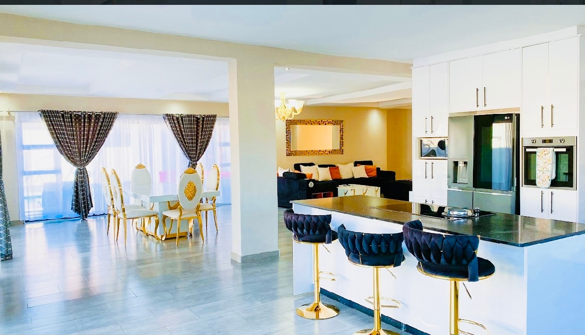 Esta es una casa espaciosa de 3 dormitorios con acabados modernos. La casa cuenta con una cocina totalmente equipada, con lavadora/secadora. Hay energía de respaldo (solar) y agua. La casa cuenta con una cómoda y elegante sala de estar que está exquisitamente amueblada. El espacio te permite relajarte después de un largo día. Los huéspedes tienen acceso a todo el alojamiento y se les proporcionarán sus propias llaves y el control remoto de la puerta eléctrica. La casa también tiene un circuito cerrado de televisión fuera de la casa para proporcionar la máxima seguridad.