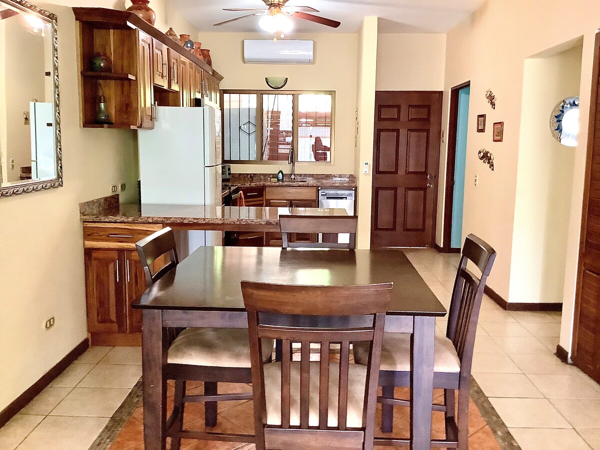 ¡Una de las mejores vistas al mar y a la montaña de Playas del Coco! ¡Damos la bienvenida a todos! Perfecto para parejas, familias y trabajadores remotos. Casa totalmente equipada, ubicada en la cima de una montaña dentro de una comunidad cerrada, a 10 minutos a pie de la playa. Tiendas de comestibles, restaurantes y tiendas cercanas. A poca distancia en coche del aeropuerto de Liberia (20 minutos). Disfruta de un concierto de pájaros y monos cada atardecer y amanecer, espectaculares vistas de las puestas de sol de Playas del Coco. ¡Cerca de la naturaleza, pero no muy lejos de los servicios!