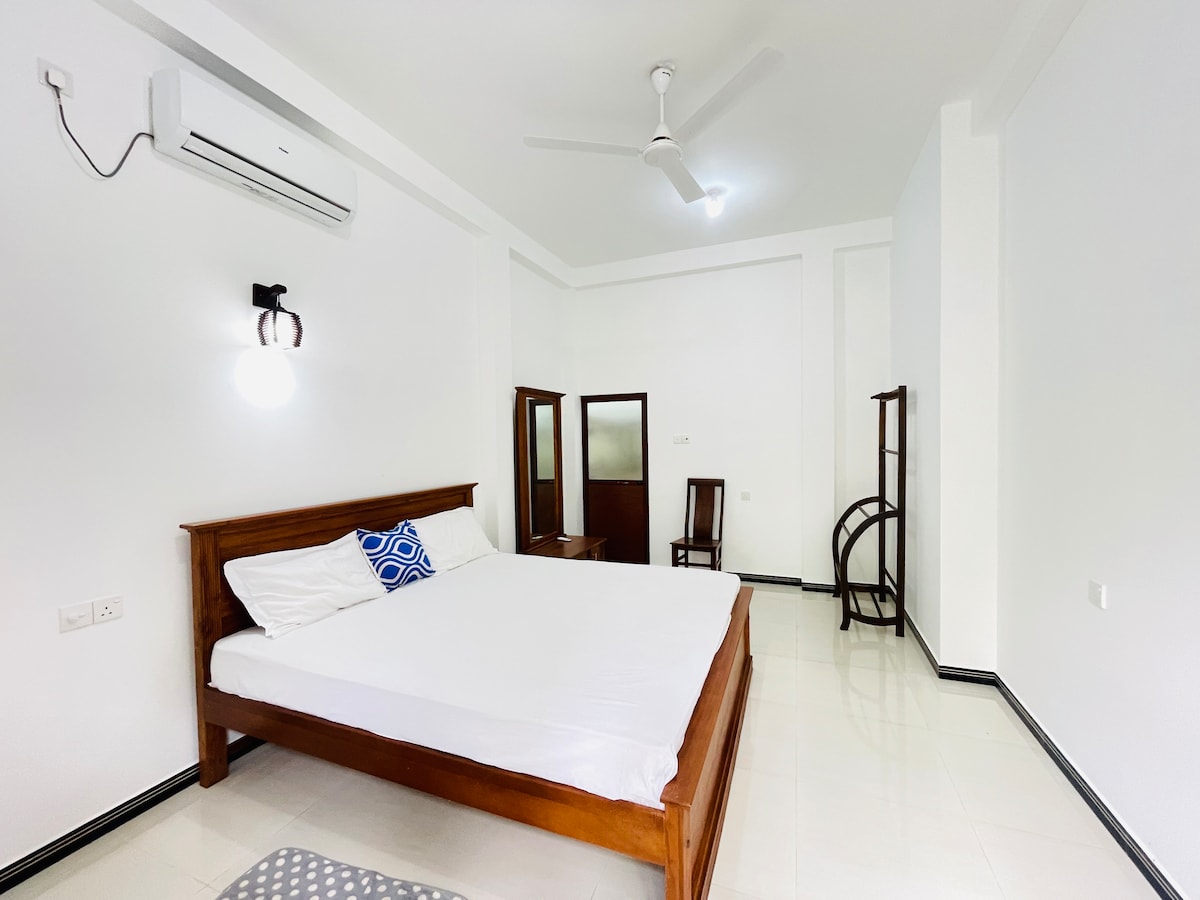 Relájate con toda la familia en este alojamiento tranquilo. Villa totalmente amueblada con cuatro amplios balcones con aire acondicionado y privado con dormitorios. Hay dos baños adjuntos y uno común con agua caliente. Dos salas de estar, cocina abierta totalmente equipada y amplia azotea. El supermercado está a 200 metros y al transporte público a 75 metros. A la playa de Polhena a 600 m, lugar de surf Madiha a 1 km, ciudad turística de Waligama a 8 km, área turística de Mirissa a 5 km.