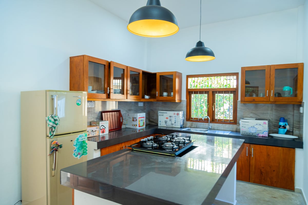 Villa de 2 dormitorios totalmente equipada con piscina y acceso directo privado a las zonas de surf populares de Madiha. Servicio de limpieza diario y servicio de chef con previo aviso. Madiha es una zona residencial tranquila y muy bonita. Cerca de la famosa casa de los médicos y muchos otros lugares, cerca de Polhena, Mirissa y la playa de Weligama. Todos los suministros están a poca distancia a pie. Podrás nadar con tortugas y realizar muchas más actividades alrededor de la villa.