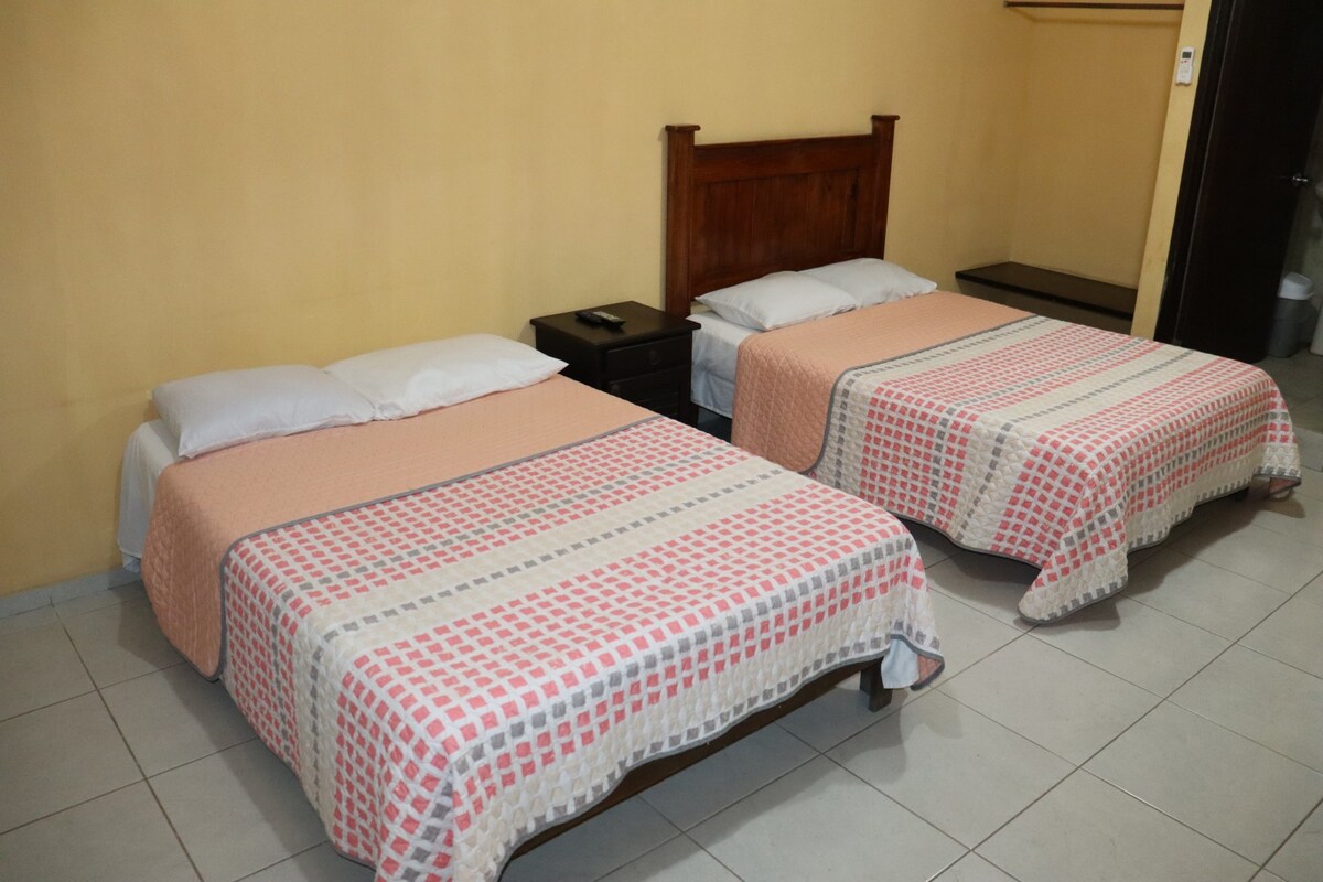 Relájate y disfruta de la comodidad de nuestras habitaciones, diseñadas para un descanso total. Comodidades de la habitación: -Camas matrimoniales con protectores antiácaros. -Cortinas blackout. -Wi-Fi de alta velocidad. -Aire acondicionado. -Ventiladores. -Smart TV. -Agua caliente las 24 horas. -Baño privado. Ubicación y servicios adicionales: -A una cuadra del mercado -Muy cerca de bancos, la presidencia, Oxxo, restaurantes, cafeterías y el jardín principal. Ofrecemos venta de tours.