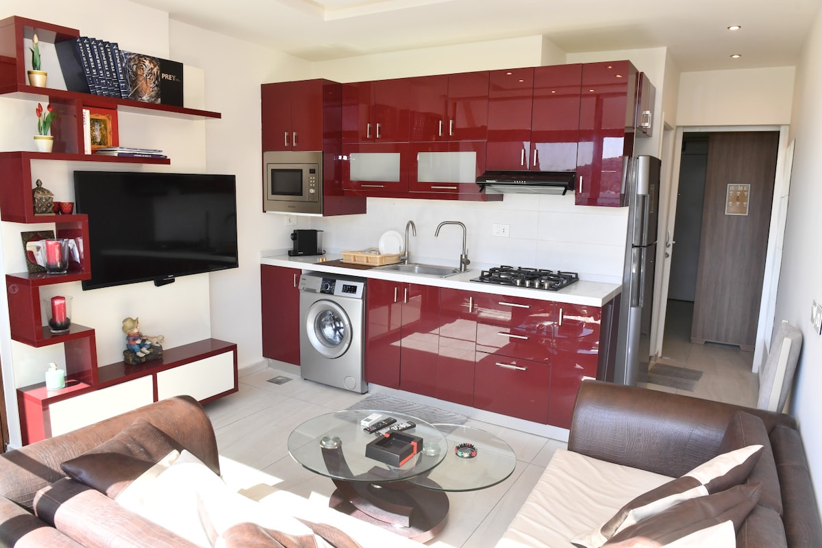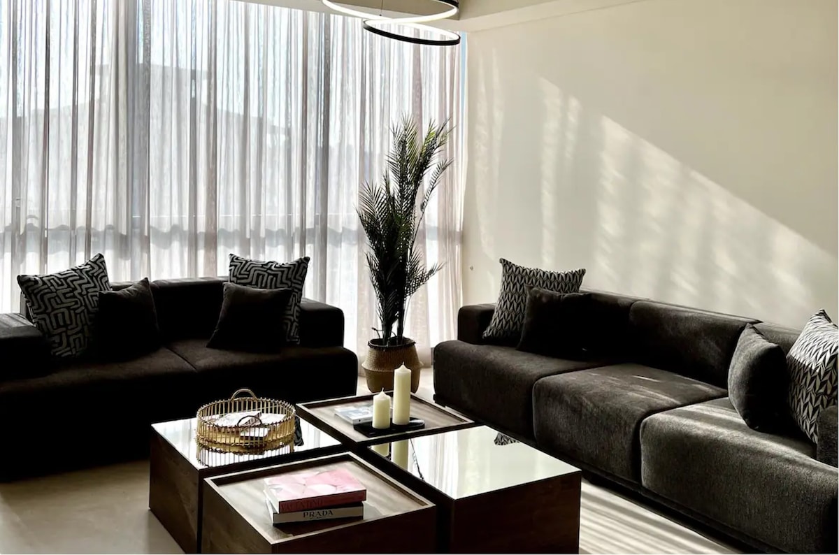 El diseño moderno combina la comodidad con el lujo, está totalmente equipado con todos los servicios que necesitas para hacerte sentir cómodo. Lo más destacado es la gran sala de estar y la gran terraza que ofrece vistas impresionantes de la ciudad, lo hace perfecto para reuniones tranquilas, especialmente en vacaciones. Ya sea para disfrutar de tu café por la mañana o de la puesta de sol, te hace sentir que estás en la cima del mundo. El anfitrión es complaciente y amable, siempre disponible para asegurarse de que tu estadía sea inolvidable. + Servicios de taxi