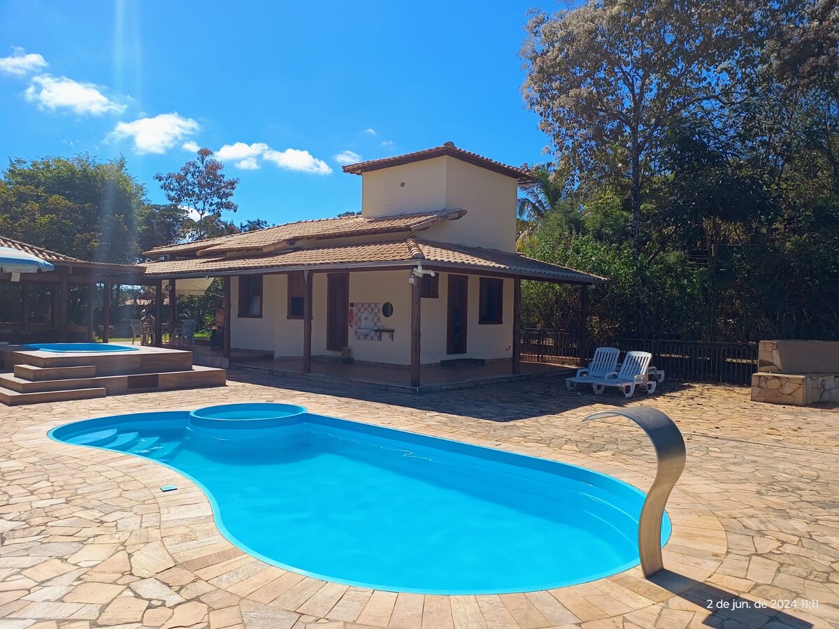 Acogedor rancho de 2200 metros, con piscina, huerto y mucha zona verde, maravillosa vista, tranquilidad y seguridad en un condominio cerrado con calles pavimentadas y portero las 24 horas. Lugar seguro y tranquilo. (Espacio completo). A 33 km del centro de Belo Horizonte.  ¡Wifi de excelente calidad! Bueno para el ocio y el trabajo desde casa.