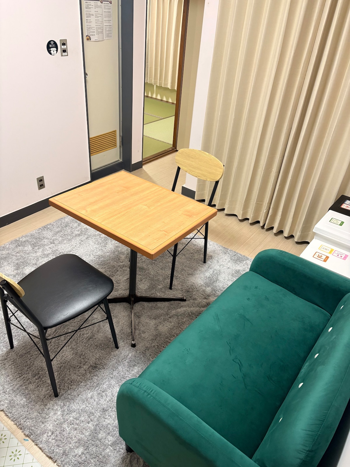 松山城のすぐふもとにある、観光にもお仕事にもぴったりのロケーション! ゲスト専用の1K個室で、まるで暮らすように滞在できます。 (同じビル内に4つのゲストルームをご用意しています) 周辺には魅力的なお店や飲食店が充実しています。 同じ建物の1階には、和スイーツと軽食が楽しめるカフェ「甘味とお食事処みつのもり」、2階には愛媛の郷土料理「鯛めしもとやまロープウェイのりば店」。 さらに徒歩圏内には「鯛めしもとやま本店別館」や、ローカルの人が集う居酒屋「それもまた人生」もあります。 2025年8月からは、左隣にガチャガチャ専門店「ひみつのもり」もオープン予定です! 道後温泉までは市内電車や自転車ですぐ(レンタサイクルあり🚲)。 松山の街歩きや温泉巡りを自由に楽しめます。 お部屋にはWi-Fi、デスク、落ち着いた照明を完備しており、リモートワークや長期滞在にも最適です。 朝日が差し込む明るい空間で、心地よい目覚めを体験してください♪ おすすめのお店や近隣の温泉のご案内もおまかせください♪ ※お部屋はマンションの一室で、完全プライベート空間としてお使いいただけます。