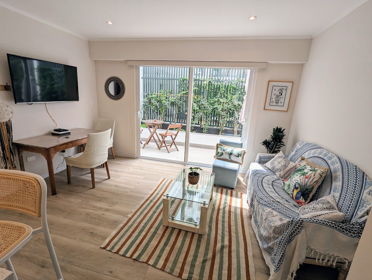 Moderno apartamento con vista al océano desde el living y el dormitorio. Ubicado en la zona turística de la ciudad, entre los distritos de Miraflores y Barranco, con bares, restaurantes y supermercados a un pie de distancia. Acceso a piscina, jacuzzi, área coworking y sala yoga en el rooftop del condominio. (Solo estadías de 2 noches o más ) Ideal para 2 personas, capacidad maxima de hasta 4 huéspedes. Perfecto para trabajo remoto. Estacionamiento libre en las inmediaciones del edificio.