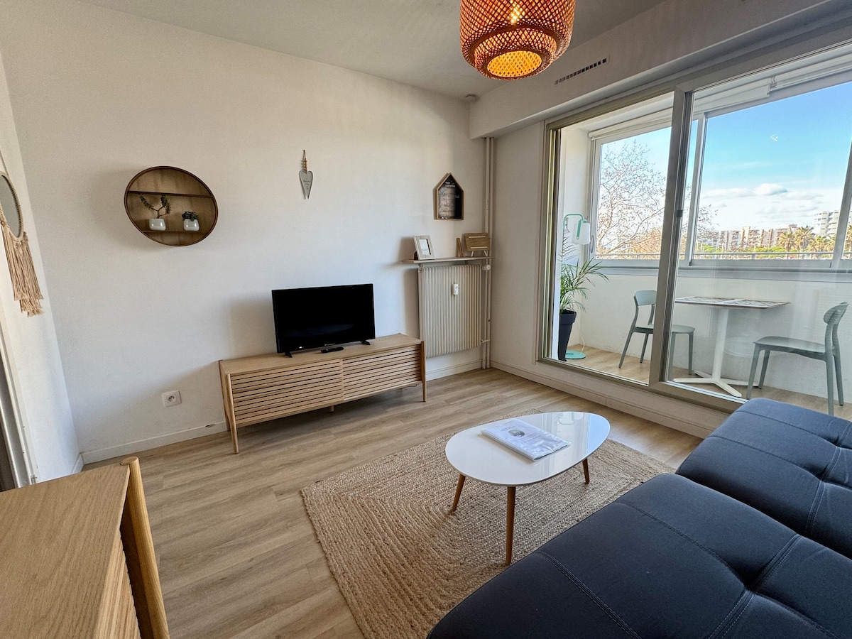 ✨ Sumérgete en un capullo elegante a dos pasos de la playa. Escape Marine le da la bienvenida en un apartamento luminoso de 48 m², clasificado 4★, con balcón, aire acondicionado, estacionamiento privado y acceso directo a la playa a través de la residencia. Disfrute de una estancia con los pies en la arena, en familia, con amigos o incluso para teletrabajar disfrutando del aire marino, mientras está en el lado de la calle, al abrigo del ajetreo y el bullicio del paseo marítimo.