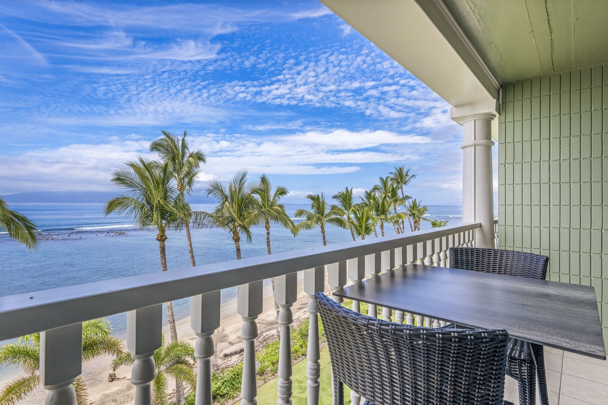 ¡Aloha! Te damos la bienvenida a nuestro hermoso condominio remodelado de 3 dormitorios y 3 baños con vista al mar en Maui. Disfruta de las vistas al océano y a Molokai desde nuestro balcón envolvente, observa tortugas marinas residentes a pocos pasos de la propiedad o disfruta de un corto viaje en auto a las canchas de pickleball frente al mar. Ideal para familias, grupos o una escapada tropical relajante.