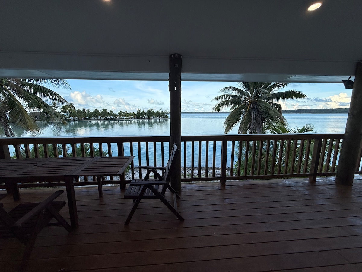 Situado dentro del pueblo de Vaipae, al lado este de la isla de Aitutaki. Disfruta de las vistas de la laguna y el motu exterior en la espaciosa cubierta delantera o en la pequeña piscina. La unidad ofrece cama tamaño king, cocina pequeña, baño, aire acondicionado y agua caliente con calefacción solar. La unidad de autoservicio/contenida viene con toallas, productos de limpieza y lavadora y ropa de cama adicional.