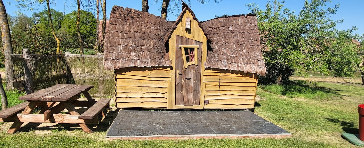 Casa de campo para cuatro personas en nuestra granja orgánica. Amplia terraza, asientos en el jardín, parque infantil a la sombra de los árboles y solo en la naturaleza. Excursiones de un día a Mont-Saint-Michel, Saint Malo, Rennes, La Baule... Drinnie-Friendly