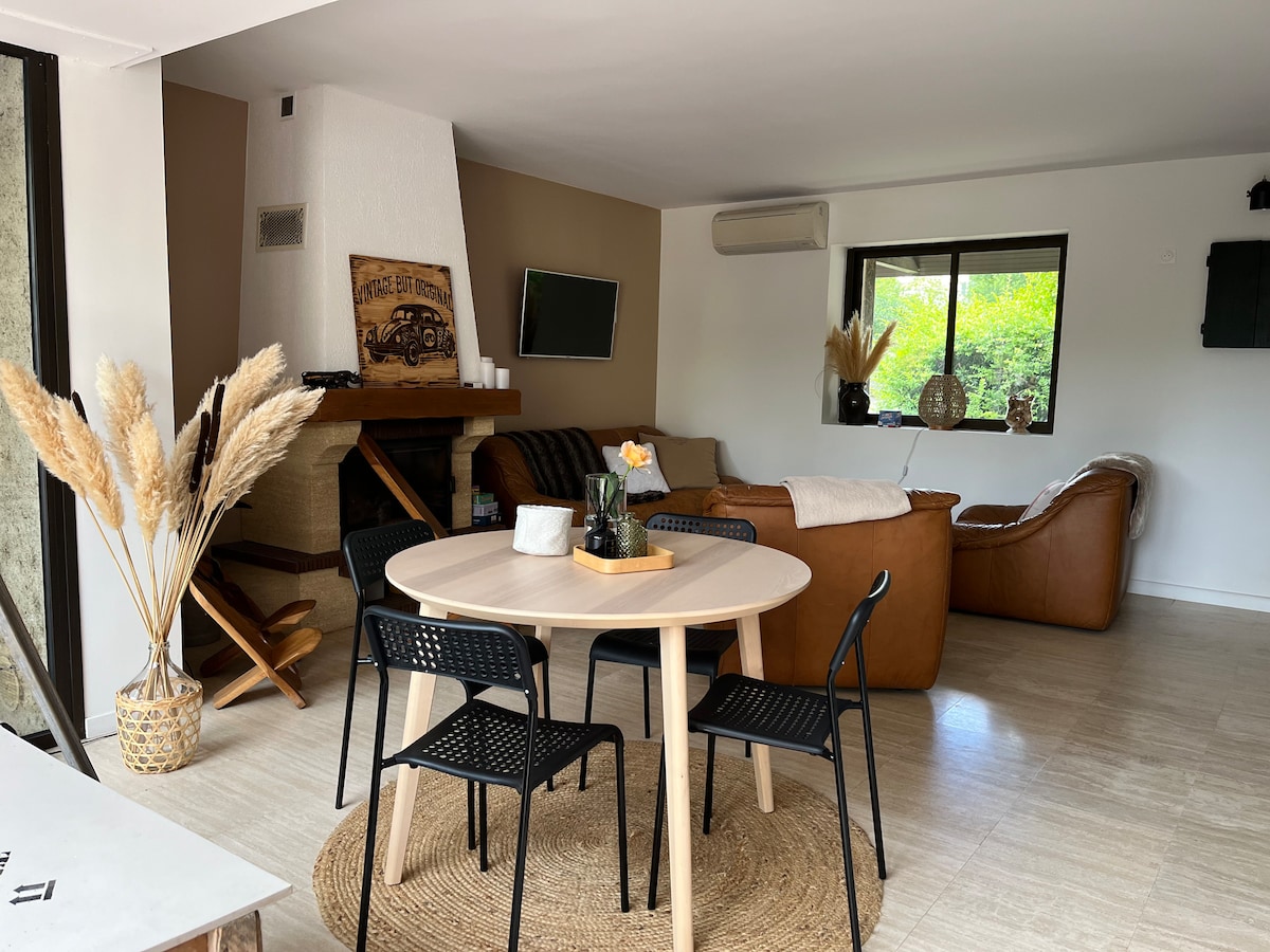 Relájese a solo 10 minutos del centro de la ciudad 🌿 ¿Te apetece descansar en un entorno tranquilo, a la vez que está a dos pasos del bullicio urbano? Esta casa cálida, cuidadosamente decorada, tiene vistas a Pau y ofrece una comodidad inigualable. También estará en el corazón de los viñedos de Jurançon🍇, en el Domaine La Paloma, un entorno encantador para los amantes del vino y la naturaleza. Julie y Laurent han puesto todo su corazón para que se sientan como en casa de inmediato.
