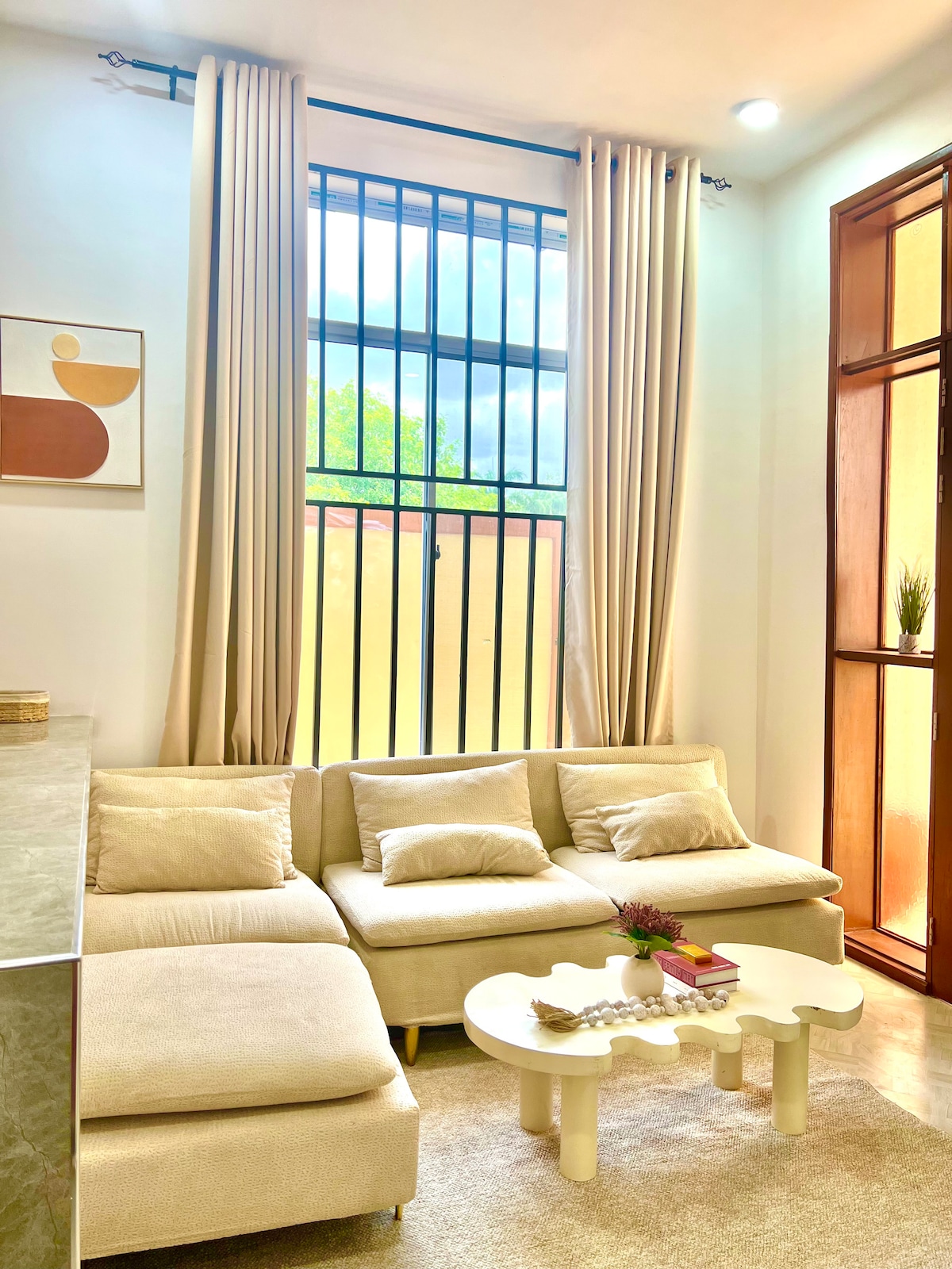 Bienvenido al departamento de un dormitorio con gran espacio para tu comodidad, relajación adecuada para parejas, personal de trabajo, viajeros, diplomáticos, estudiantes, expatriados Una cocina totalmente equipada, una sala de estar, un baño moderno, ropa de cama acogedora, estación de café, área de lavandería, La vista del jardín con una sala de estar al aire libre hace que la casa esté más viva Está ubicado en la zona privilegiada donde tendrás acceso a restaurantes, cafeterías, vida nocturna, resorts de playa,