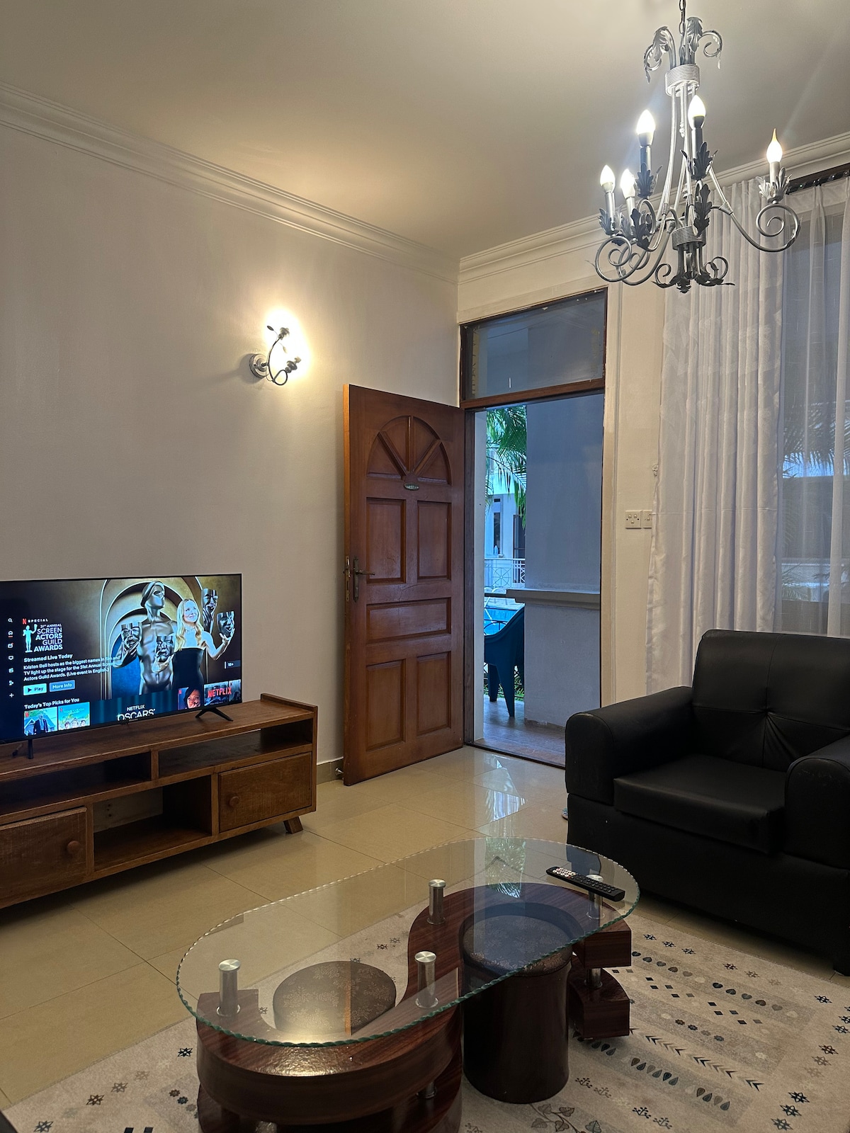 Welcome to one bedroom apartment with big space for your comfort,relaxation suitable for couples gatesway,working staff,travellers,diplomats,students,expatriates A full equiped kitchen,a living room,a modern bathroom,cozy beddings,coffee station,laundry area, The view of the garden with an outdoor sitting area makes the home more alive Its located in the prime area where you will have access to restaurants,coffee shops,nightlife,beachresorts,