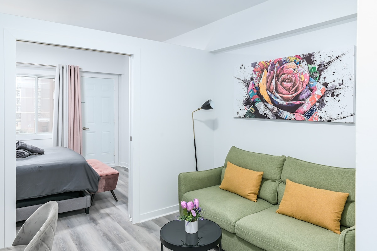 Entra en un acogedor departamento de un dormitorio diseñado para ofrecer comodidad y una vida sencilla. El espacio cuenta con un dormitorio cómodo y un sofá cama en la sala de estar, por lo que es perfecto para parejas, amigos o familias pequeñas que visitan Montreal. Su ambiente acogedor y su ubicación cómoda lo convierten en uno de los alojamientos favoritos de los huéspedes.