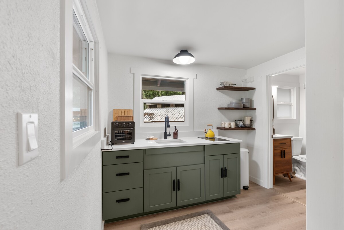 Escápate a una cabaña estudio privada junto a un arroyo para un máximo de 4 huéspedes. Este sereno escondite cuenta con una bañera de hidromasaje cubierta, una amplia terraza con parrilla y una ducha al aire libre única. Perfecto para una escapada romántica o una pequeña aventura familiar cerca del río McKenzie, ofrece un espacio de trabajo dedicado, conexión Wi-Fi de alta velocidad y cocina totalmente equipada. Disfruta de un aislamiento tranquilo con comodidades modernas.