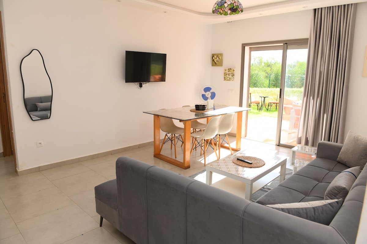 🏡 Te damos la bienvenida a MITTA HOUSE Un apartamento nuevo, elegante y luminoso ubicado en la planta baja de una residencia segura y tranquila en Cabo Negro. Perfecto para parejas, familias o amigos que buscan una escapada relajante. El apartamento tiene menos de un mes de antigüedad y cuenta con un jardín privado con acceso directo y vistas a la piscina, ideal para disfrutar del aire libre con comodidad.