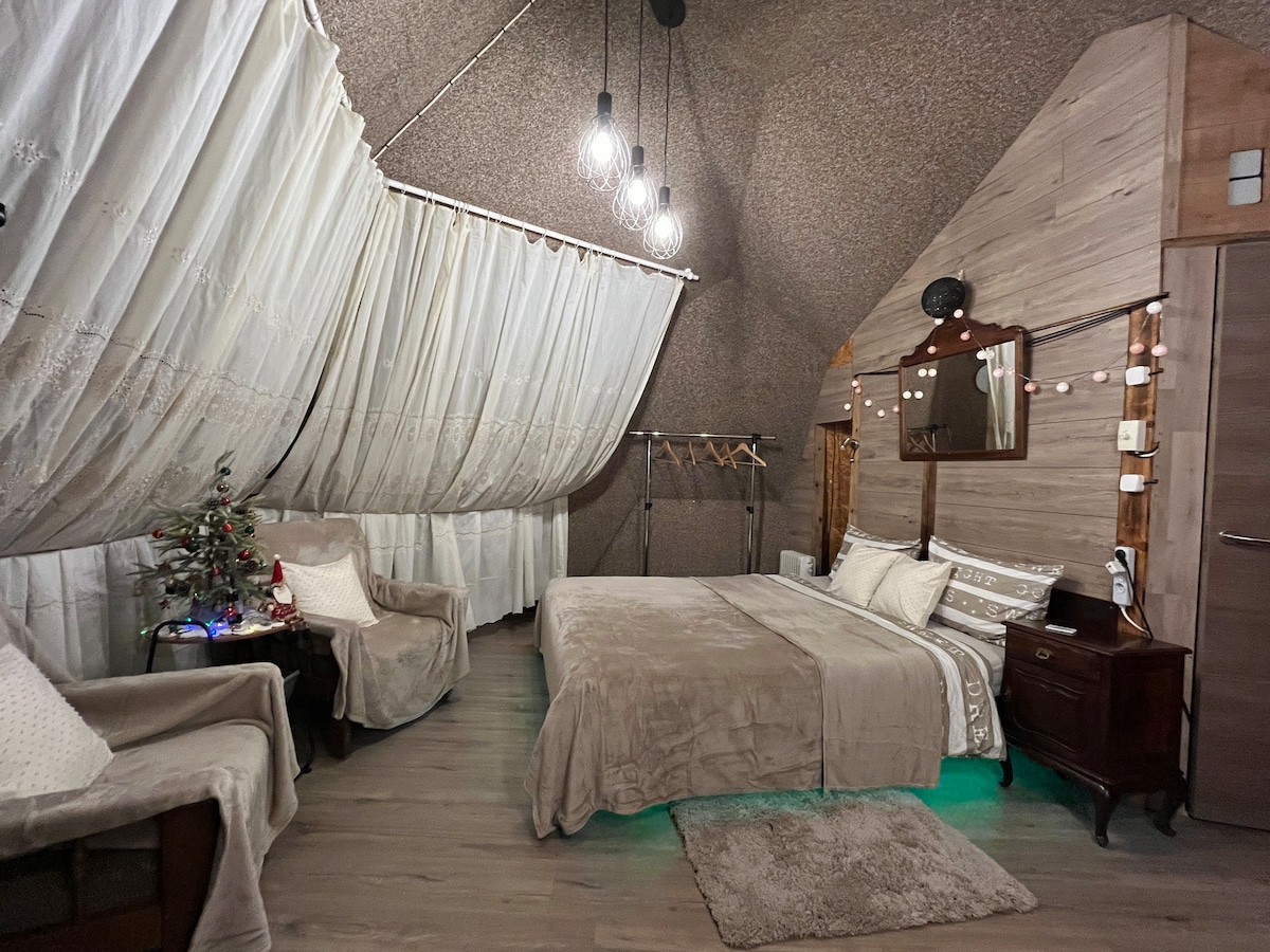 Retiro al atardecer en la montaña • Cama tamaño king y senderos