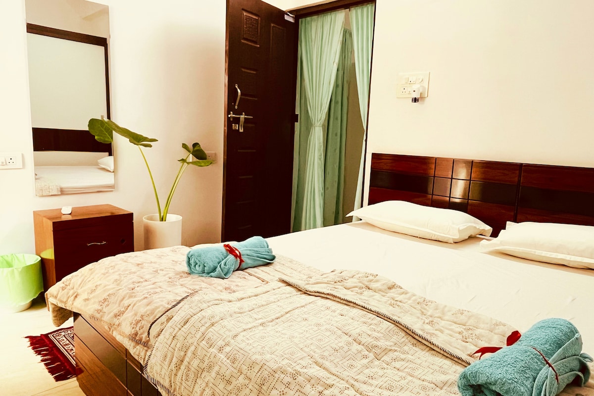 ● 1BHK independiente en planta baja en el centro de Hyderabad, tranquilo, bien conectado ● Zona de estar luminosa, sofá y TV para estancias relajadas ● Cocina pequeña con inducción, nevera y utensilios ligeros para estancias largas. ● Acogedor dormitorio con cama, escritorio y silla, ideal para trabajar desde casa y exámenes. ● Perfecto para profesionales, aspirantes a exámenes, trabajadores remotos. ● Acceso privilegiado: Charminar a 20 minutos, Ramoji Film City a 45 minutos, oficinas cercanas ● Cafés, restaurantes, supermercados a pocos pasos ● Coorganizado profesionalmente por The Homestay Academy