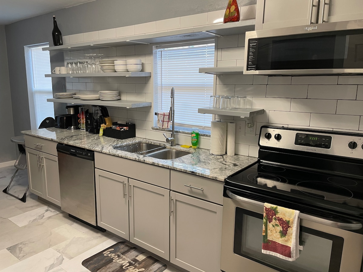 Casa amueblada de 1.000 pies cuadrados, recientemente remodelada e incluye comodidades diseñadas para satisfacer las necesidades de las familias que buscan una escapada tranquila y relajante con su soldado, profesionales ocupados o aquellos que disfrutan de unas vacaciones. Quiero que esta casa sea tu “hogar lejos del hogar” . ¡Así que no es necesario que traigas tu plancha, baño o artículos de cocina! Este alojamiento se encuentra a 10 millas del lago Lawtonka, Ft. Refugio de vida silvestre de las montañas Sill y Wichita. La piscina abrirá en mayo. Piscina cerrada en octubre.