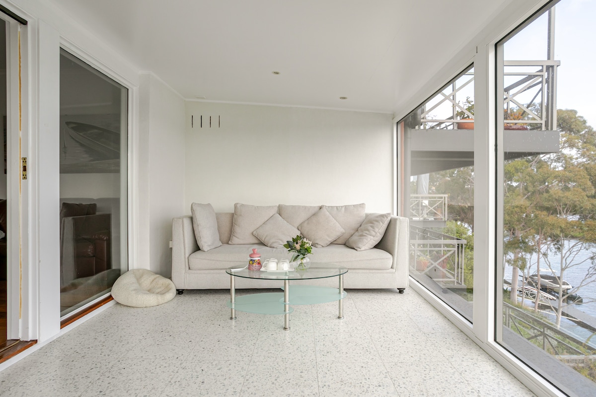 The rarest of opportunities to enjoy genuine river's edge with Free Kayaks and fishing activities and free parking. Three levels with a fabulous living/entertaining zones and river frontage.Three spacious bedrooms (extra-large master boasting with private balcony). 1 extra bedroom in a lounge/theatre room with gas-log fireplace and integrated surround sound system. Cot request on the booking. Huge living area and adjoining sunroom. A brilliant alfresco deck with huge BBQ area.