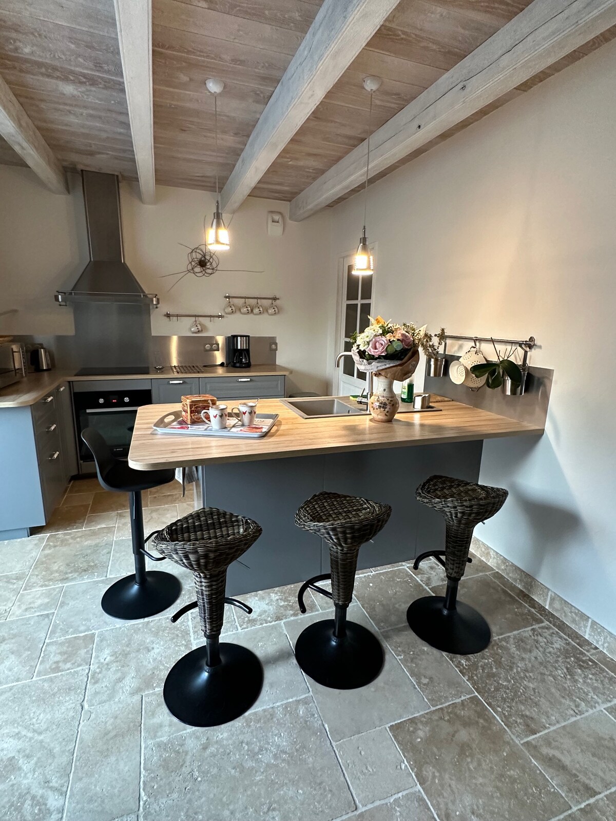 Esta casa rural excepcional, clasificada 5 espigas, ha sido decorada con refinamiento en un antiguo granero completamente rehabilitado. Combinando el encanto de los materiales originales con un diseño contemporáneo de alta calidad, es un nido ideal para una escapada en pareja, bajo el signo del bienestar y la serenidad. Para su relajación, sauna, baño finlandés, balneario y estufa de leña le esperan para pasar una estadía inolvidable. Fórmula completa: ropa de cama, desayuno, limpieza, cama hecha
