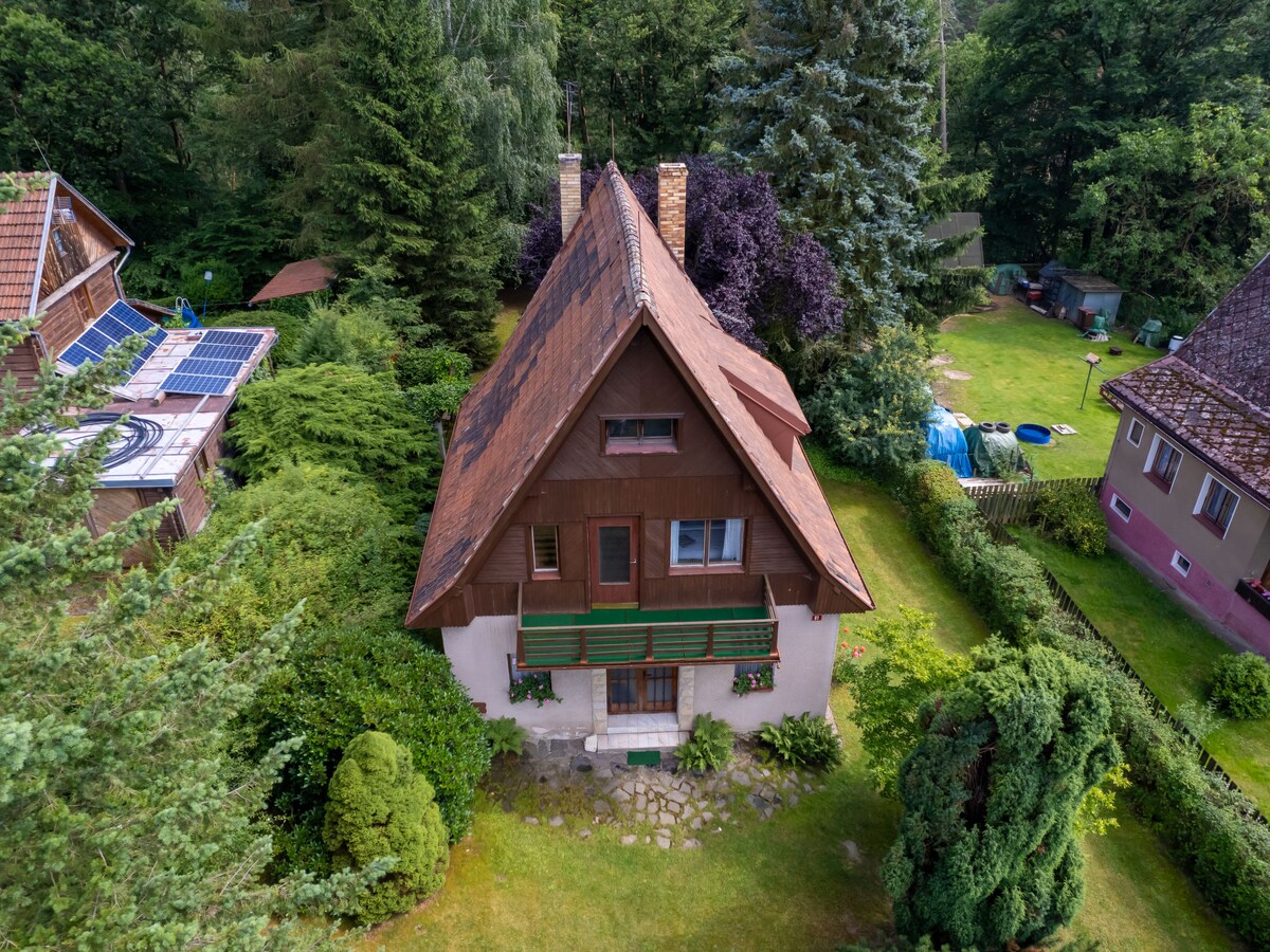 Blue Lake House se encuentra en un bosque de pinos, a solo un minuto a pie del lago Lhota, un lugar donde las aves cantan y el aire se siente como unas vacaciones. La casa de campo cuenta con chimenea, sauna de infrarrojos y terraza con parrilla. Disfrutarás de un exuberante césped con riego automático, mosquiteros en todas las ventanas y artículos básicos para bebés, como una cuna y una silla alta. Perfecto para parejas y familias que valoran la paz y la cercanía a la naturaleza. ¡Se admiten mascotas!