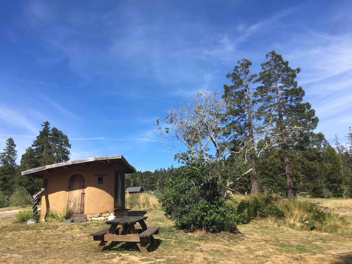 La propiedad está situada cerca de la ciudad de Mendocino, aproximadamente a 4 millas directamente al este de la ciudad. Es una casa de huéspedes separada de la casa de campo principal. Hay numerosos árboles que rodean la casa de campo, lo que proporciona privacidad. Las vistas son de prado abierto, bosque y manzanar. Un montón de espacio al aire libre; chimenea, anillo de hadas de secuoya con hamaca, fuertes secretos de árboles, juegos de césped, cocina al aire libre con fregadero, mostrador y barbacoa.