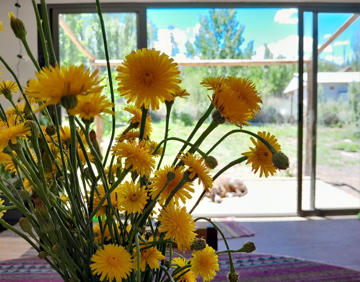 Cabaña cálida entre montañas, ideal para familias o amigos. A pasos del río y cerca de termas, bodegas y actividades como trekking, kayak o cabalgatas. Tranquilidad, naturaleza y comodidad en un entorno único.