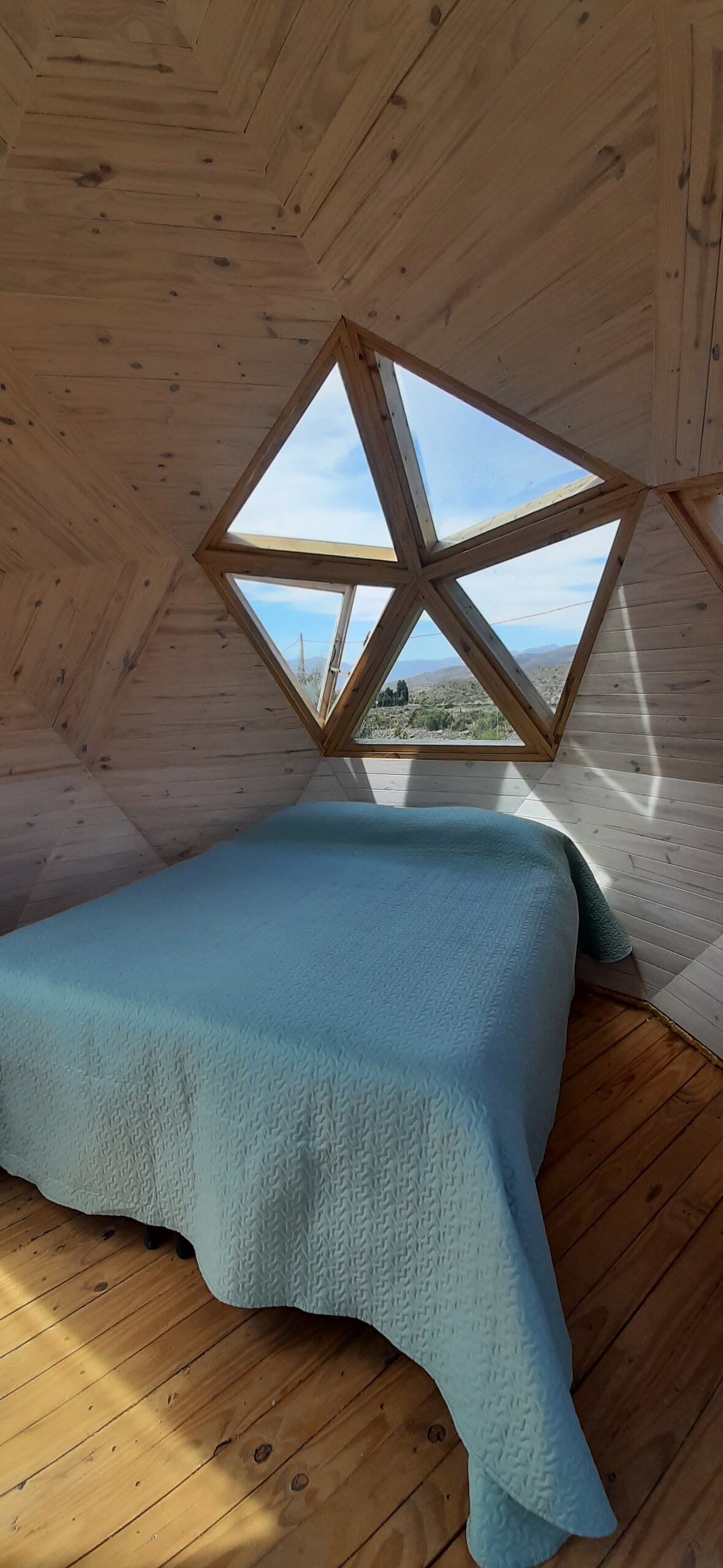 Disfruta del contacto con la naturaleza! El monte Andino hace que nuestro espacio sea muy especial, para compartir en familia, en pareja o con amigos. Ideal para práctica de trekking y de actividades outdoor en general. Ideal para Nómades Digitales! En los espacios comunes podrás compartir con otros viajeros del mundo e intercambiar culturas y ricas comidas! El Domo cuenta con: - Una Cama matrimonial. - Mesa pequeña para trabajar. - WIFI