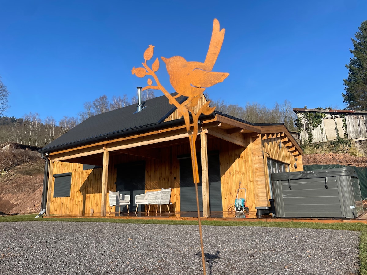 Este chalet situado en un entorno rural y verde que ofrece hermosas caminatas o ciclismo ,punto de partida ideal para visitar el lado de Alsacia o el lado de los Vosgos Chalet nuevo con cocina equipada, baño, un dormitorio con cama de 160x200, un segundo dormitorio en el altillo con dos camas de 90x200, televisión y wifi. Una hermosa terraza con vistas a un estanque y un jacuzzi privado están a su disposición para hermosos momentos de relajación Los comercios están a unos 8 km