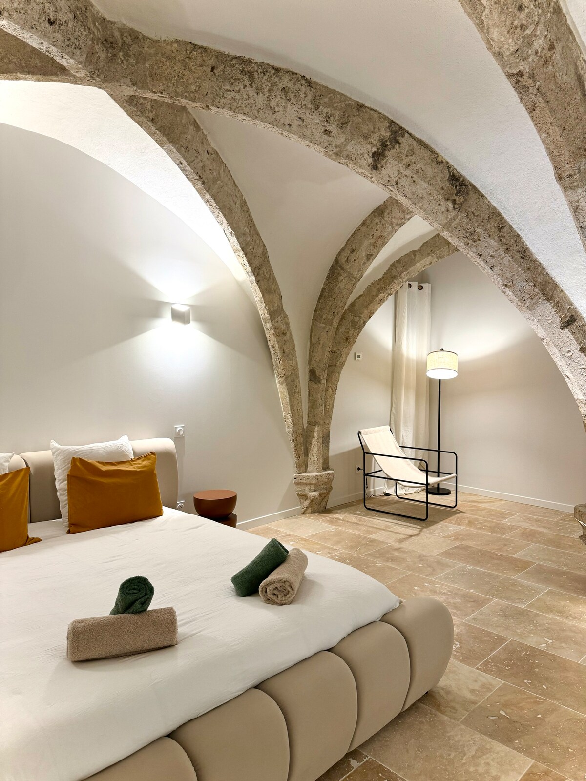 Una escapada única y romántica en el corazón de Amboise, a orillas del Loira, un espacio atípico y auténtico (tallado en la roca en el siglo XVI) con una decoración de diseño y equipamiento moderno. En un espíritu loft en varios niveles: el baño y su BALNEO/JACUZZI para un máximo de relajación en pareja. El salón está equipado con un televisor conectado de 65 pulgadas y una barra de sonido de alto rendimiento. El espacio nocturno y su cama de diseño para una noche cómoda y, por último, la zona de comedor.