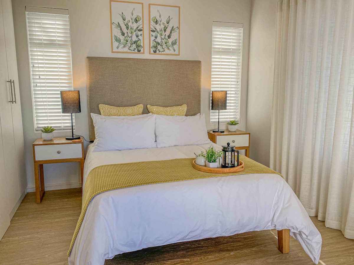 Our solar powered cottage is the ideal place to enjoy a relaxing getaway in Onrus. Mere minutes from Hermanus, the cottage is located within walking distance from the beach and various tidal pools in the area. Fitted with solar panels, battery and inverter, the cottage has back-up power and is ‘loadshedding proof’. The space is beautifully furnished & decorated, stylish enough to make it feel special, but informal enough to enjoy your time at the beach. We offer RELIABLE, FAST FIBER internet.