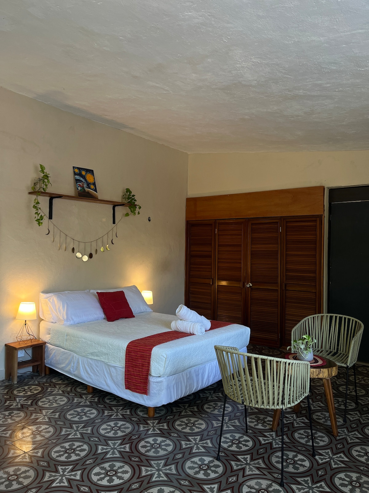 Hermosa suite privada llena de luz natural. La claridad y sencillez del espacio te harán sentir tranquilo, fresco y relajado. El plano de planta es un concepto abierto y perfecto para: relajarse, descansar, dormir la siesta, con vistas a la piscina. Una ubicación muy conveniente justo al lado del Parque La Plancha, Corredor Gastronómico 47 y a poca distancia a pie del Paseo de Montejo con las mejores cafeterías, restaurantes, mercados y otros lugares de moda cerca de nuestro hermoso Centro Histórico.